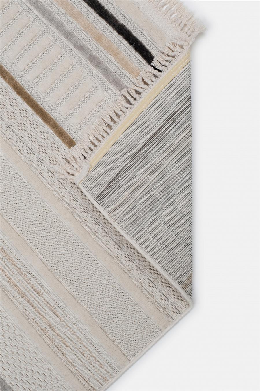 Bej Çizgi Desenli Modern İskandinav Halı – bej geometrik tasarımlı modern bir halıdır.